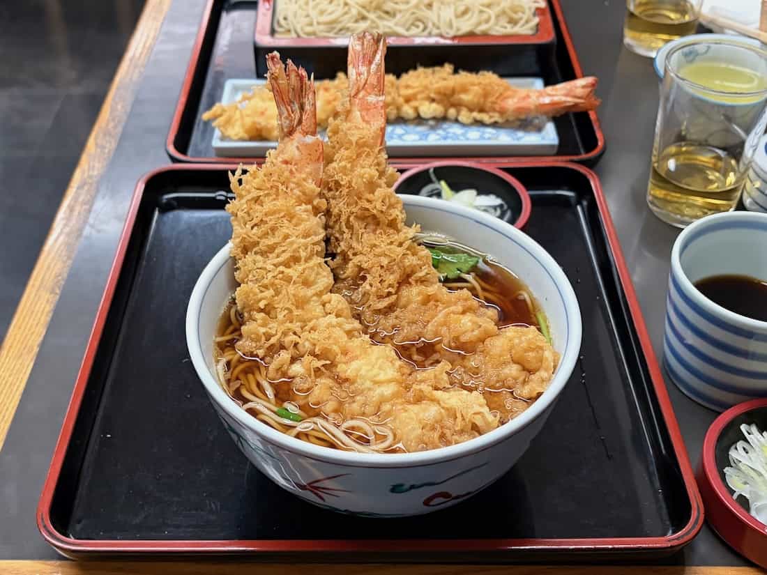 尾張屋といえばカラッと揚げた車海老の天ぷらをのせた上天ぷらそば。