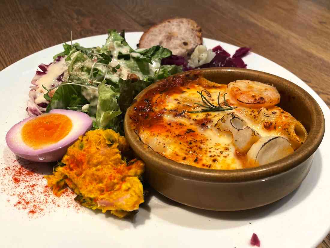 メニューはとてもシンプル。メインの料理は野菜がたっぷり入ったグラタン、チャウダー。