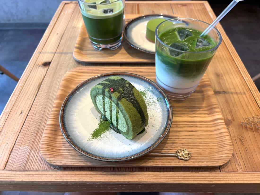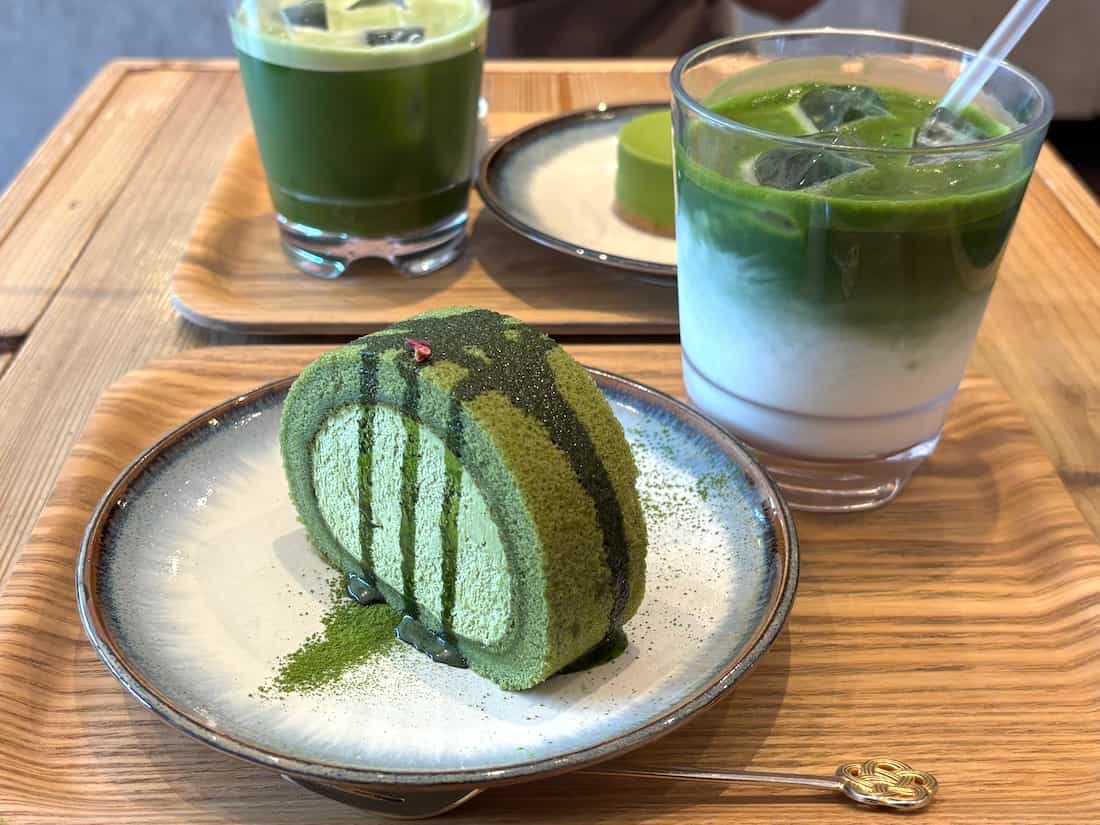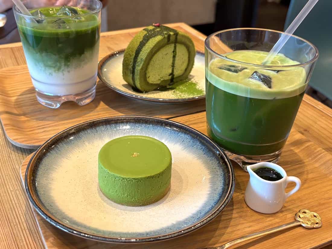 とにかく抹茶の緑が綺麗なスイーツとドリンク。