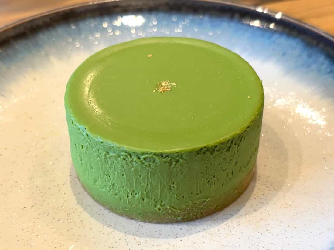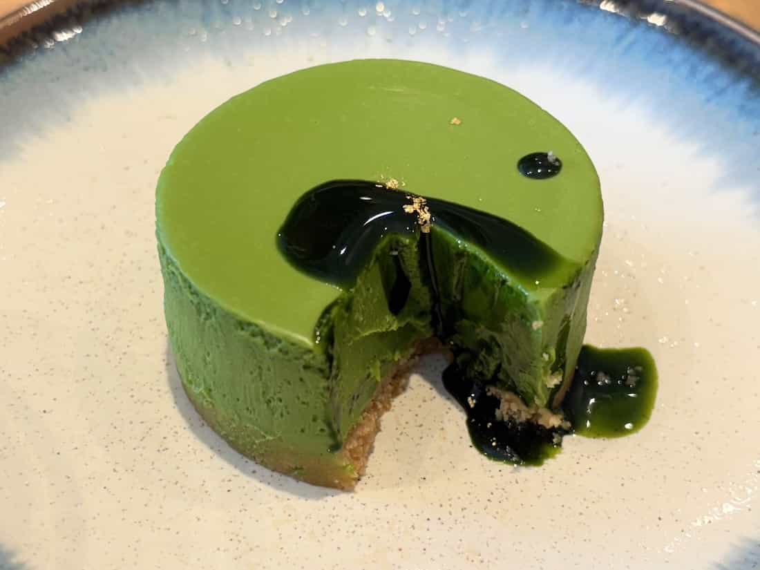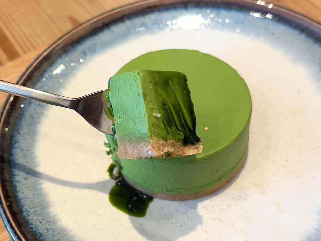 抹茶チーズケーキは舌触り滑らか。抹茶の風味だけでなくチーズの旨みもしっかり。