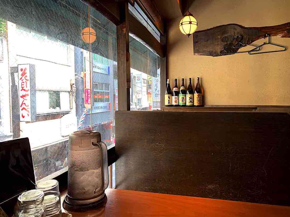 カウンター席、テーブル席合わせて約50席ほど。カウンター席には綺麗な金魚が泳ぐ水槽が置いてあり、テレビも設置されています。