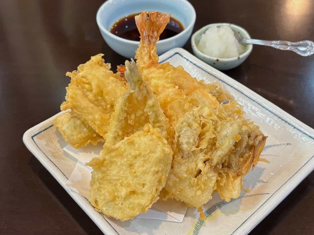 海老の小かき揚げの衣は、優しい香ばしさとふわふわサクサクの食感が気持ちいい仕上がり。香り豊かな三つ葉と海苔もたっぷり。