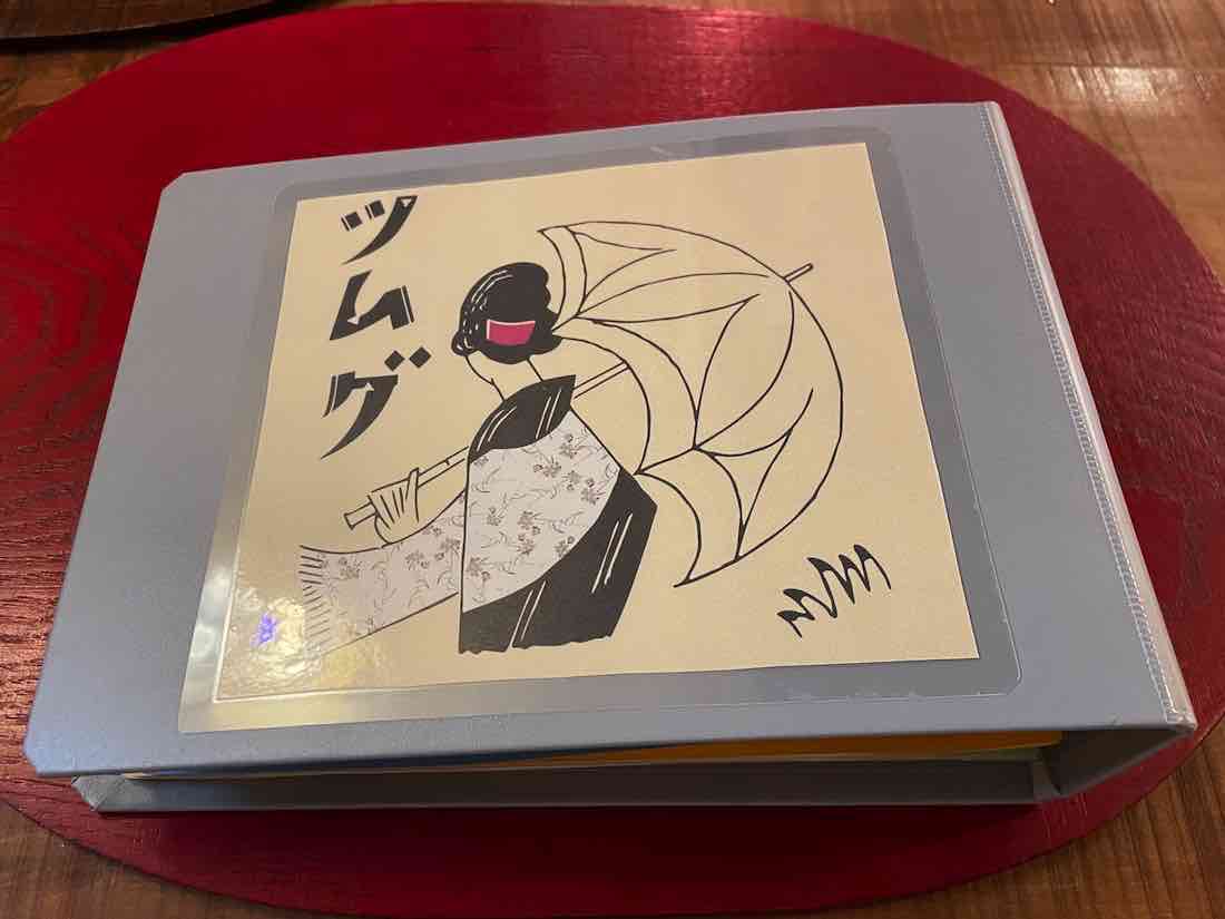 メニューの表紙には和服を着た女性の後ろ姿が描かれています。