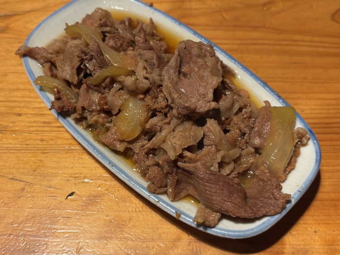 醤油と砂糖で煮込んだ牛肉。あの吉野家の味わいでホッとする1品。