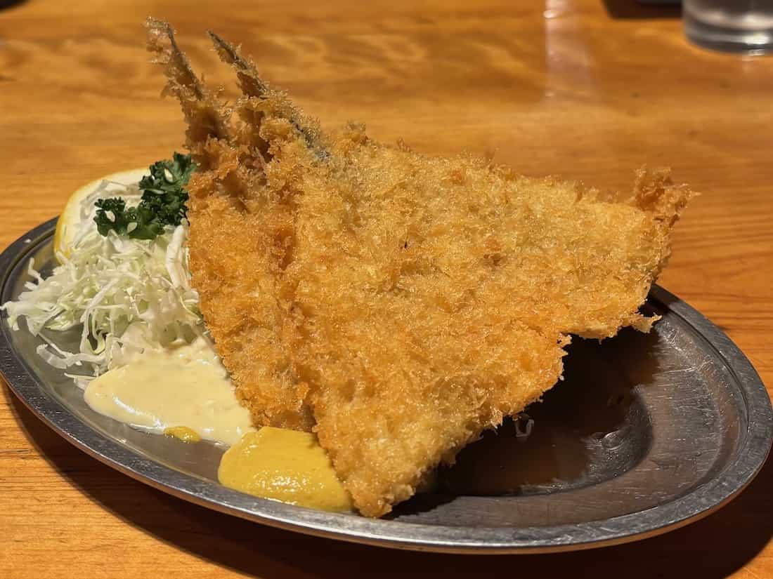 この日はおそらくアジ。揚げたてで熱々ふわふわ。マヨネーズとカラシ付き。
