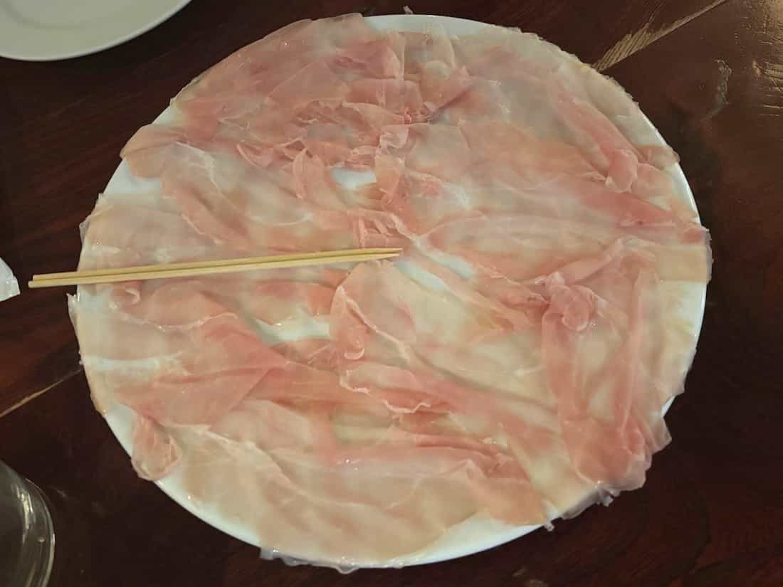 とにかく薄い。フグ刺しのように複数枚一緒に食べるとあっという間になくなってしまう。