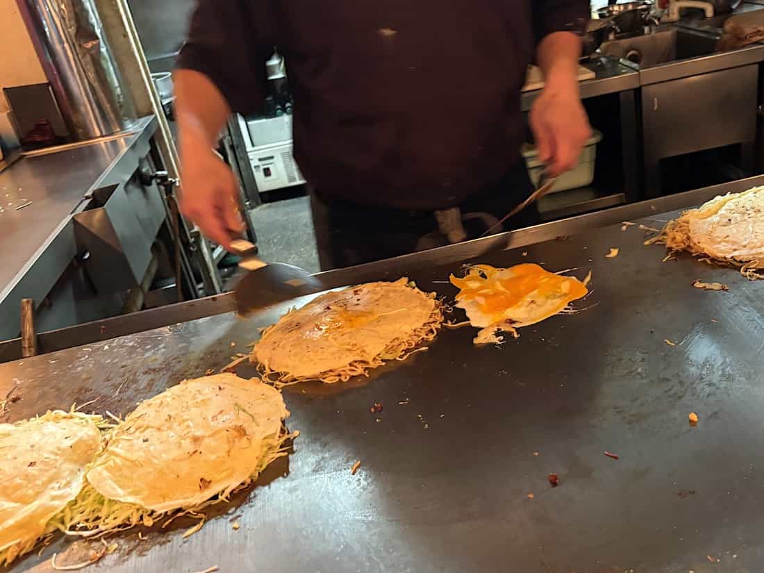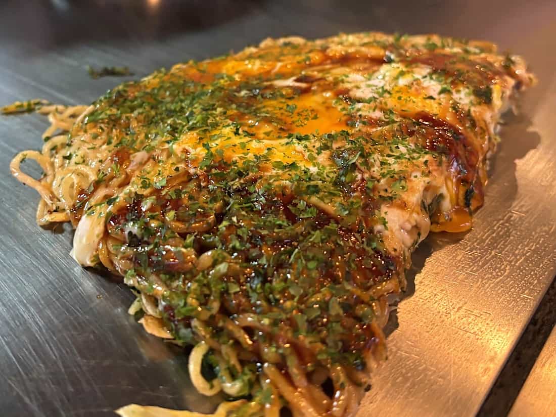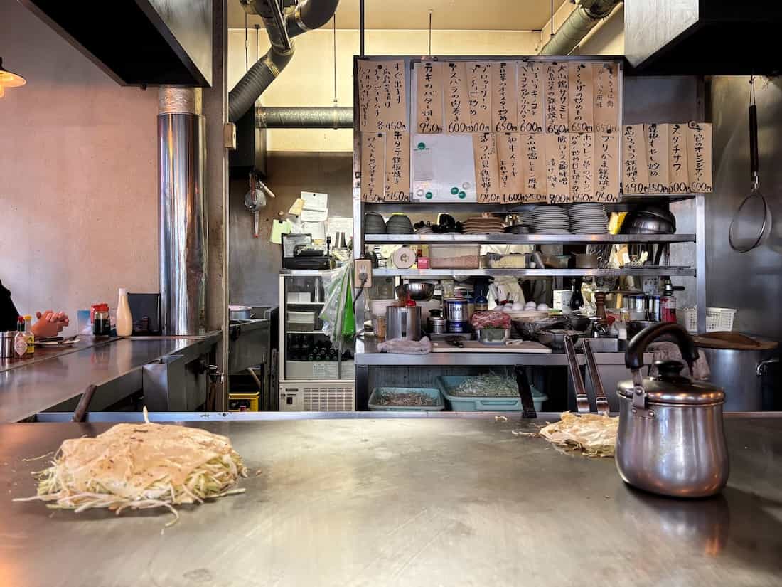 満席になって忙しい時間帯になると、ご主人が鉄板で焼きながら電話を肩で支えて問い合わせ対応までしている達人技が凄かった。