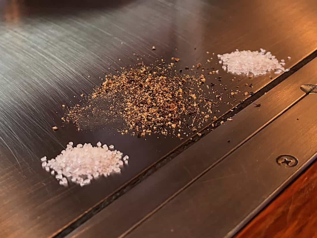 あらかじめ味付けして仕上げてくれますが、鉄板の上に塩とコショウも置いてくれます。