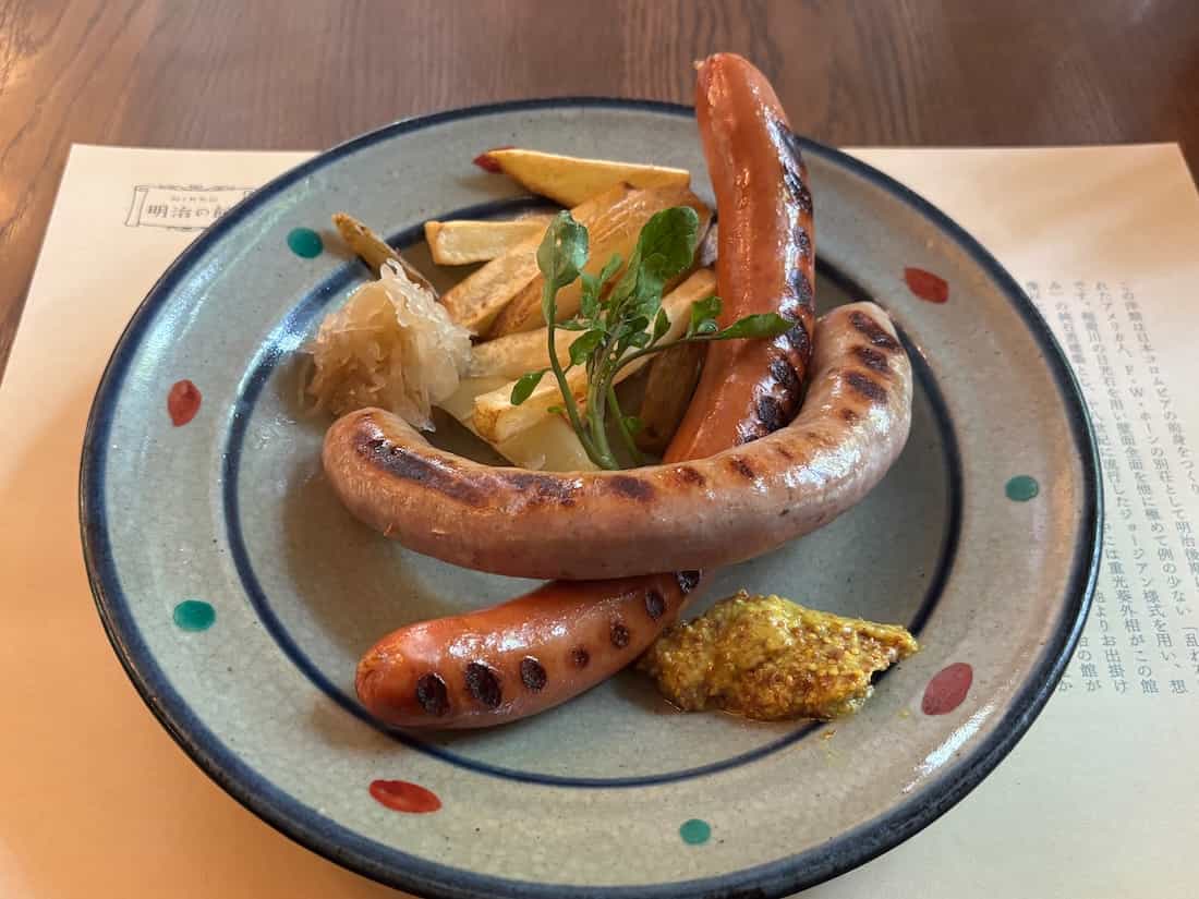 日光HIMITSU豚のソーセージ盛り合せ1760円。