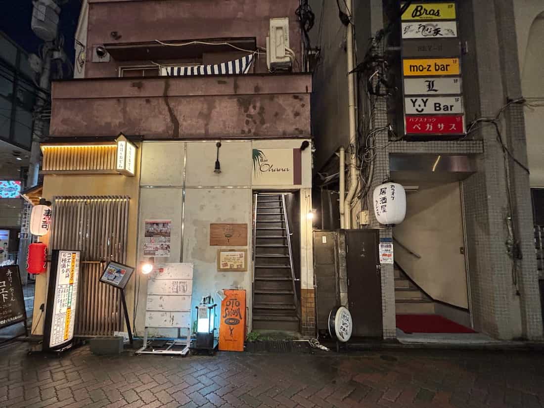 こちらが外観。階段を登った2Fにあります。