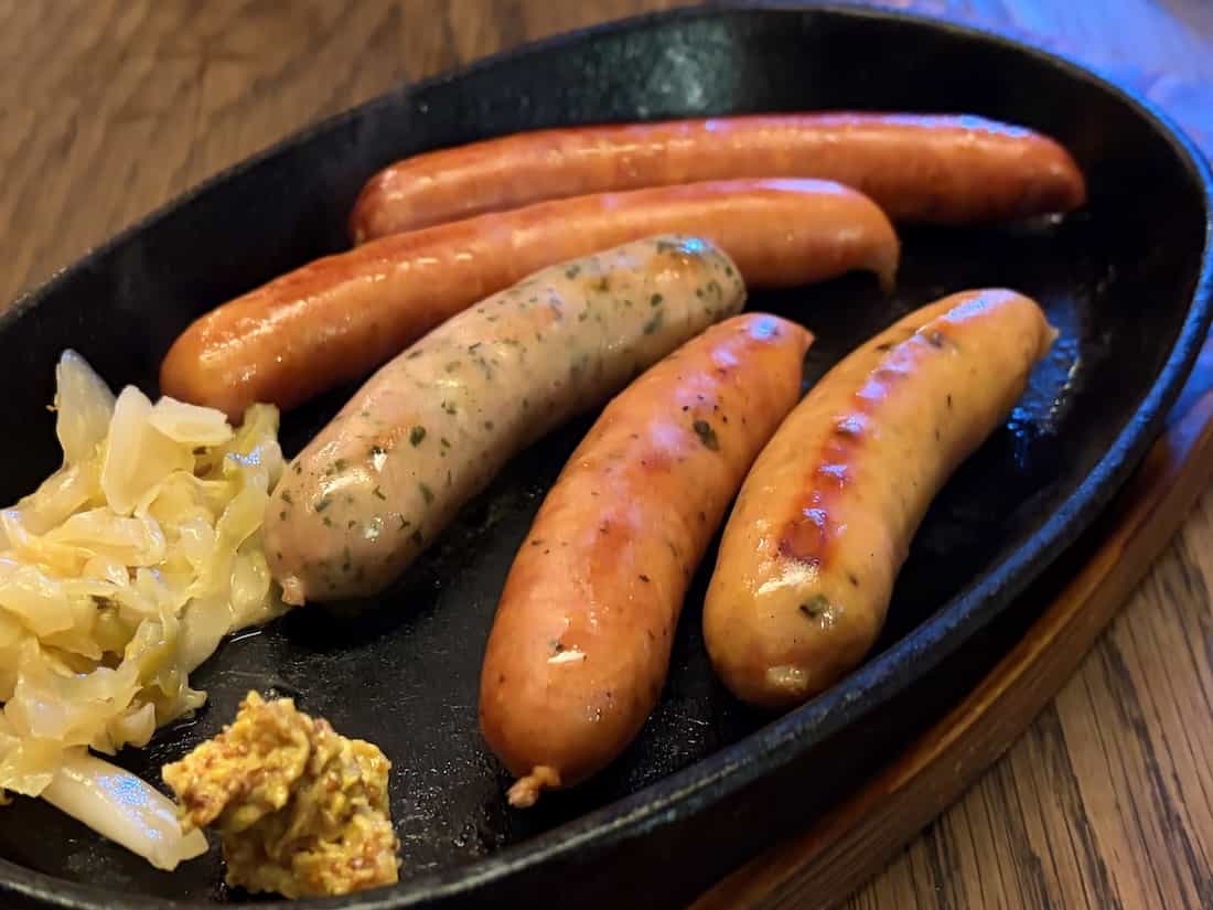 ソーセージはあらびき、ブラックペッパー、チョリソー、ハーブ、カレー。全部種類が異なる味わいなので全く食べ飽きない。