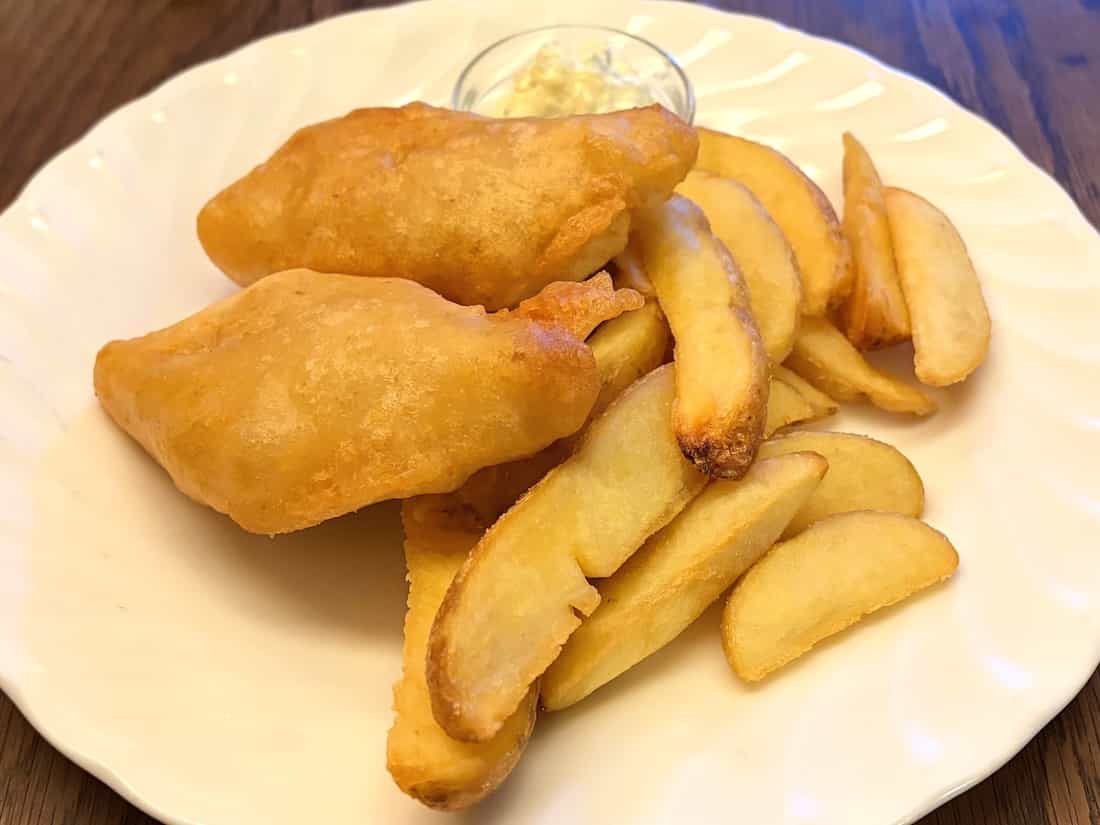 衣にはビールも混ぜてあるそうで揚げたてサクサク。白身魚は肉厚でジューシー。