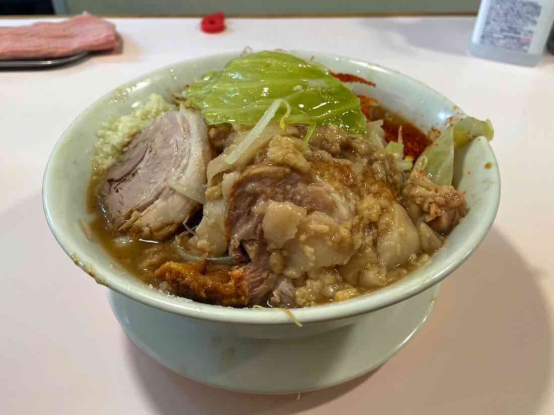 吉祥寺駅北口から徒歩約20分。店名の通り、成蹊大学の横にある「二郎系」のラーメン店。