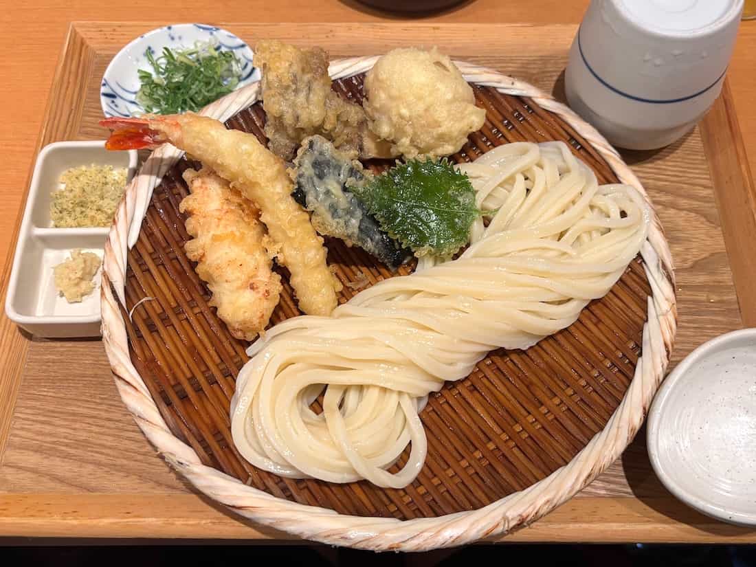 写真は冷たいざるうどん。濃い出汁に付けて食べるスタイル。