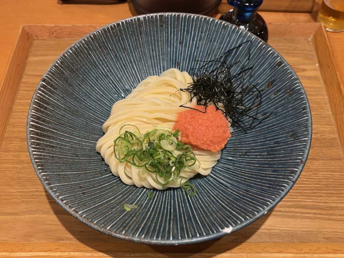 明太子の量がたっぷり。全部混ぜてから食べても良し、うどんだけを味わってから明太子と合わせて食べても良し。