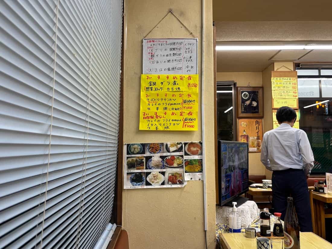 金曜日の夜、開店直後の18:20くらいに訪問したのですが、すでに小滝橋通り側のテーブル席には常連と思われる男性たちが座っていました。
