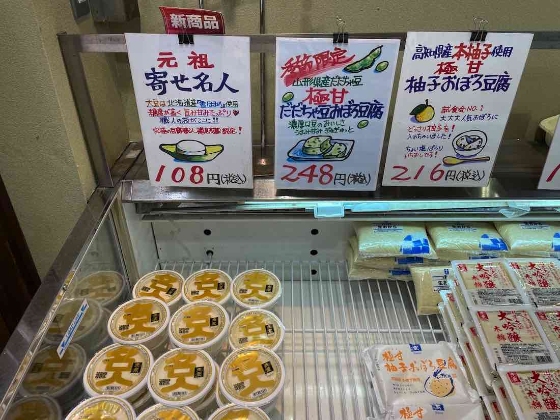 とにかく安くて美味しい商品が数多く並んでいる三代目茂蔵。枝豆が入ったひと工夫ある豆腐なども200円前後の価格帯です。