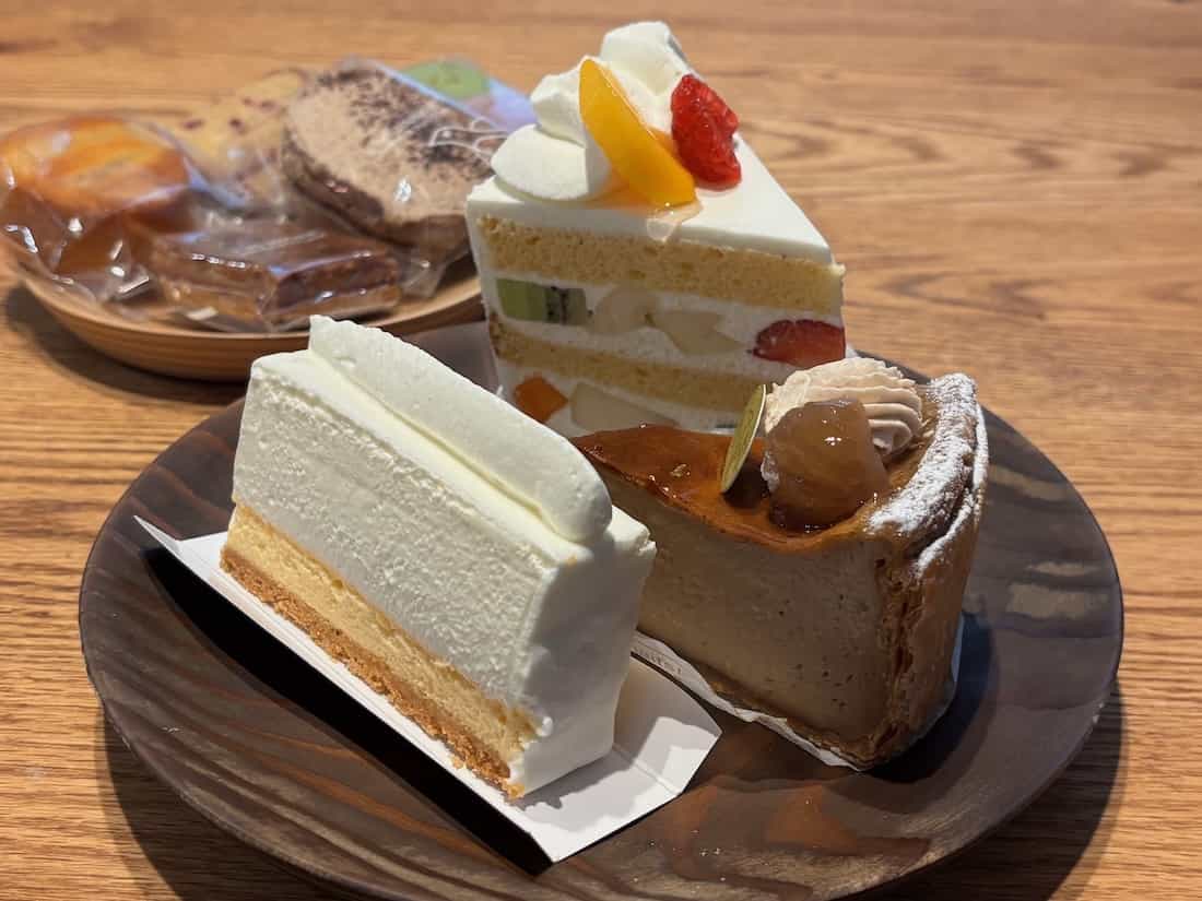ケーキは1つ600円前後、焼き菓子は300円前後、クロワッサン・パンオショコラなどのパンは300円前後で購入できます。